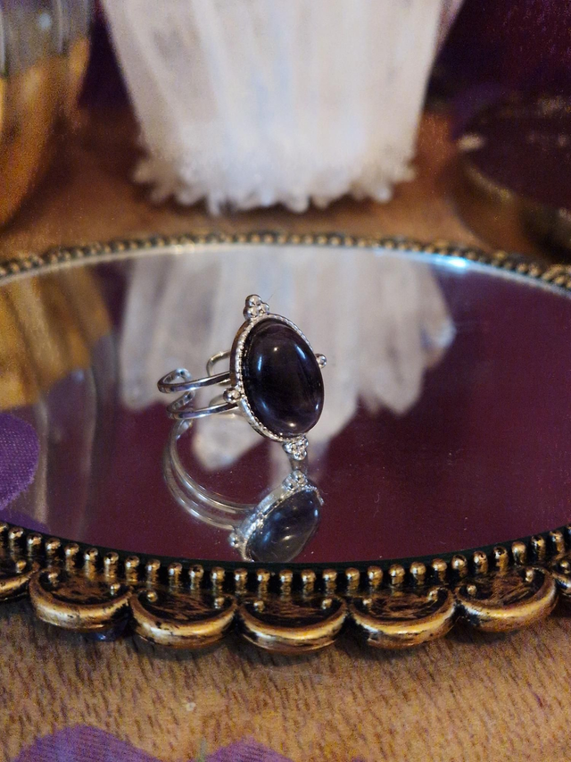 Bague réglable en acier inoxydable avec pierre d'améthyste 10×14mm